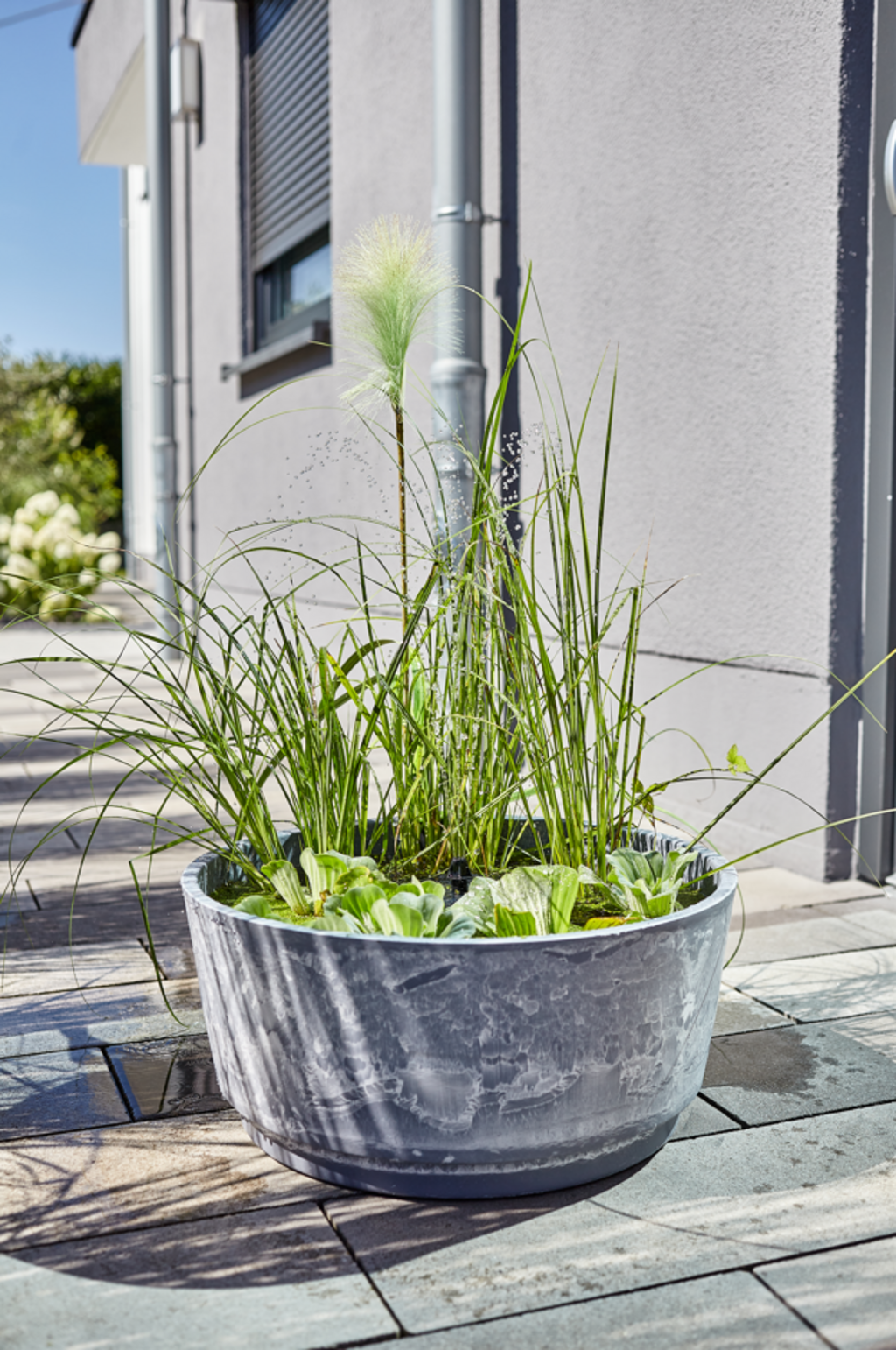 Dieser HEISSNER Wassergarten verwandelt jeden Außenbereich in eine beruhigende Wohlfühlzone und verbessert spürbar das Mikroklima. Dank der solarbetriebenen Pumpe genießt man das sanfte Plätschern umweltfreundlich und ganz ohne Stromkosten. Die Gestaltung ist denkbar einfach: Wasser einfüllen, Pflanzen einsetzen und die Natur genießen. Selbst auf kleinstem Raum schafft man so ein ästhetisches Highlight und eine wertvolle Wasserquelle für nützliche Tiere.