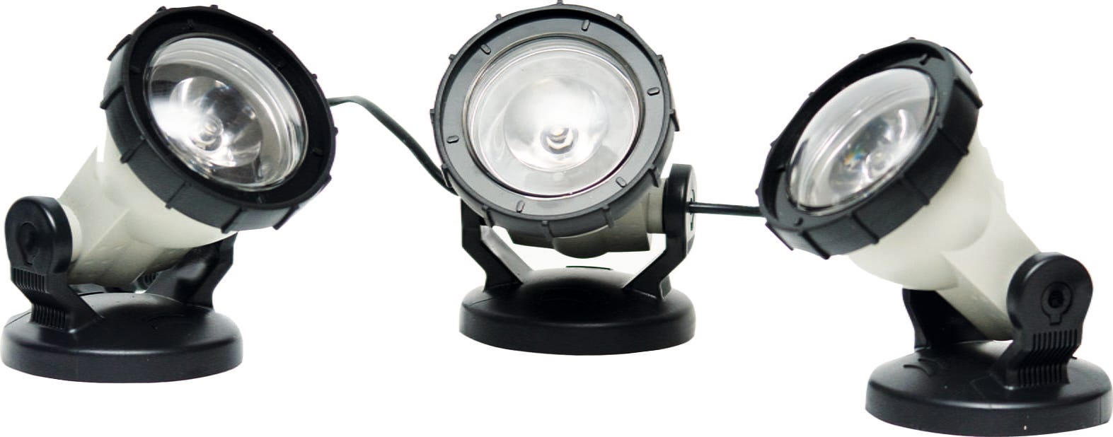 3x Teichlicht mit 7 m Anschlussleitung zwischen Trafo & Lampe
