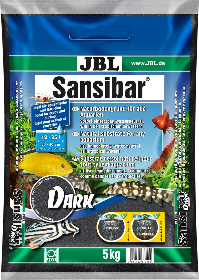 JBL Sansibar DARK ist ein umgefärbter Naturbodengrund mit grobkörnigem, abgerundeten Sand für alle Aquarien und optimal für gründelnde Tiere, da dieser feine abgerundete Quarzsand auch in den Heimatgewässern dieser Tiere vorkommt. Bei gründelnden Fischen wie Rochen, Dornaugen und Welsen, etc. werden die empfindlichen Barteln geschont. Die feine Körnung und dichte Lagerung verhindert das Einsickern von Mulm und anderen Abfällen und beugt so Fäulnisprozessen vor, die das Pflanzenwachstum behindern könnten. Für prächtigen Pflanzenwachstum empfehlen wir JBL AquaBasic plus Langzeit-Nährboden mit JBL Sansibar DARK als Deckschicht. JBL Sansibar DARK gibt weder Härtebildner noch unerwünschte Silikate an das Aquarienwasser ab.