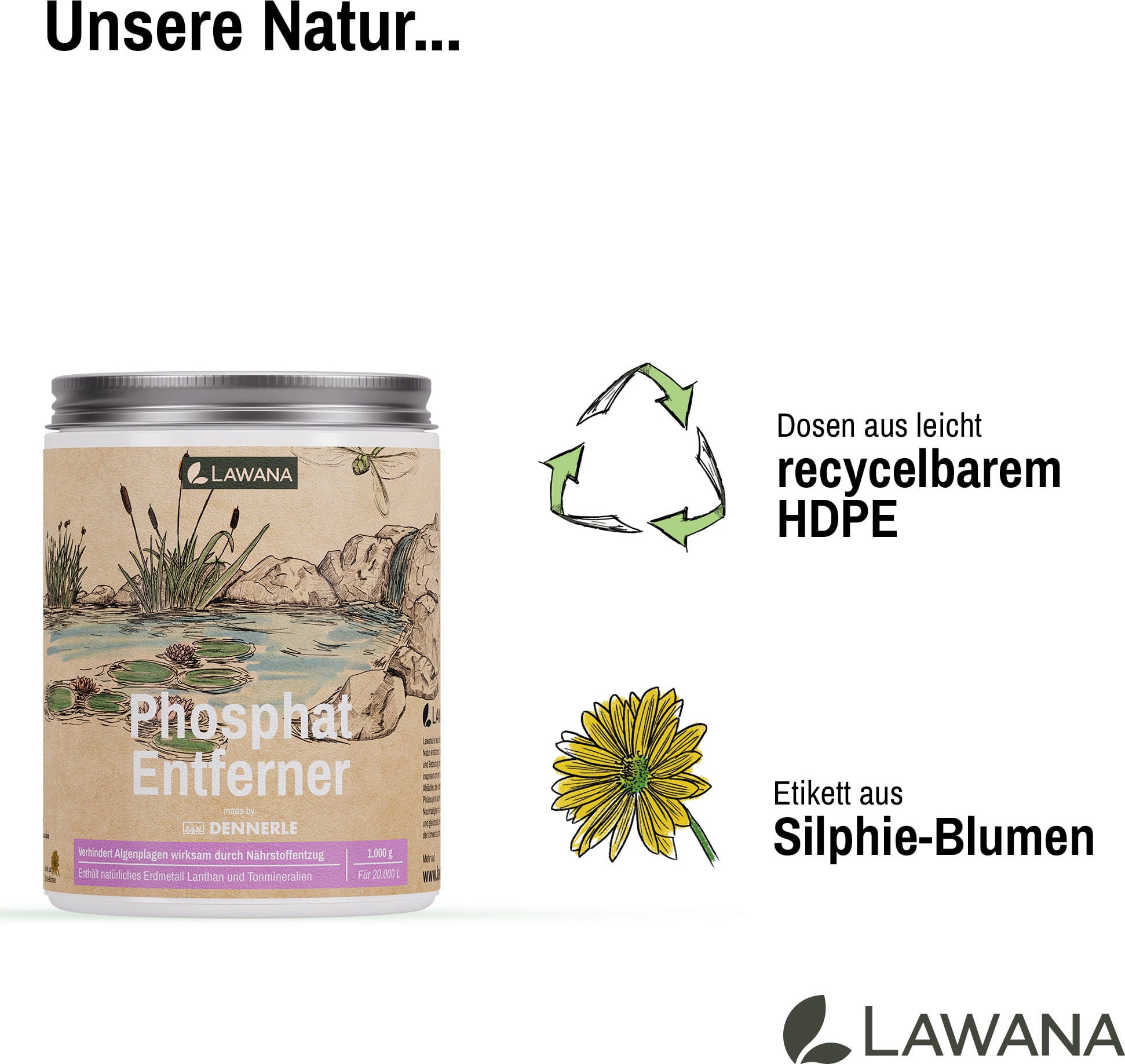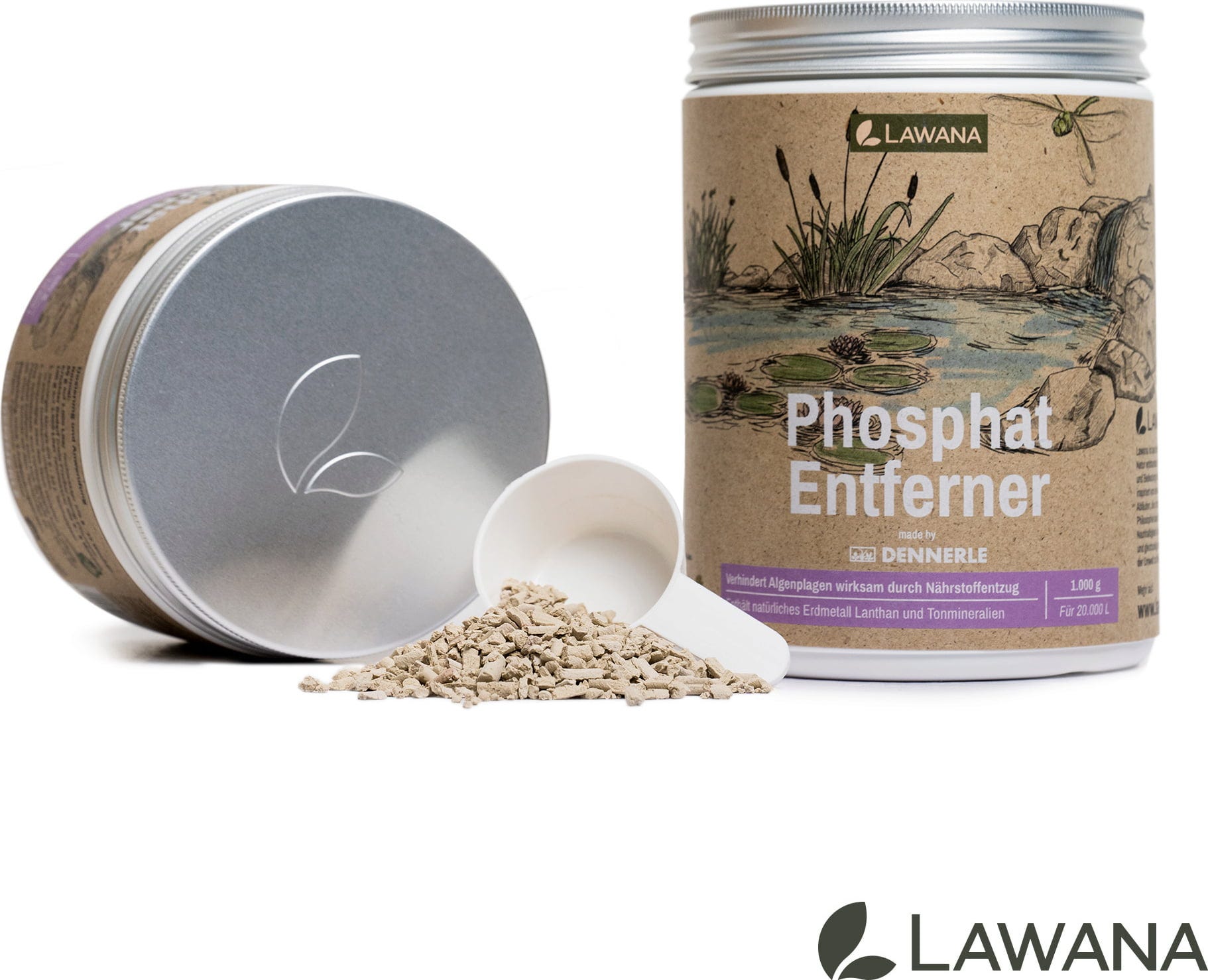 Mit dem Lawana Phosphat Entferner entziehst du deinem Teich überschüssige Nährstoffe auf Basis natürlicher Erdmetalle und Tonmineralien. Das enthaltene Lanthan bindet Phosphate sowohl im freien Wasser als auch direkt am Boden dauerhaft, sodass diese nicht wieder in Lösung gehen können.