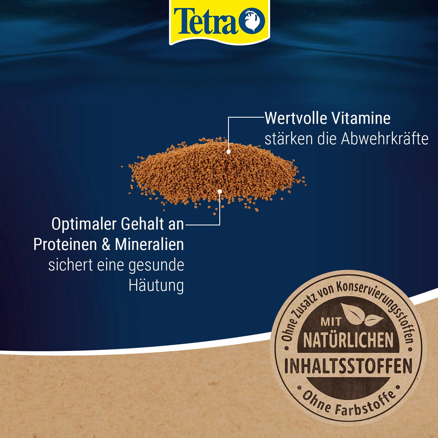 Tetra Crusta Granules ist ein Granulatfutter für Krebse und Garnelen. Die mit hochwertigen Carotinoiden versehenen Garnules sinken praktisch ab. Das Crusta Granules Futter sorgt für eine artgerechte und abwechslungsreiche Ernährung. Durch ihre Formstabilität ermöglichen sie das natürliche Fressverhalten von Garnelen und Krebsen und belasten das Wasser nicht. Ihr optimaler Gehalt an Proteinen und Mineralstoffen sichert eine gesunde Ernährung.