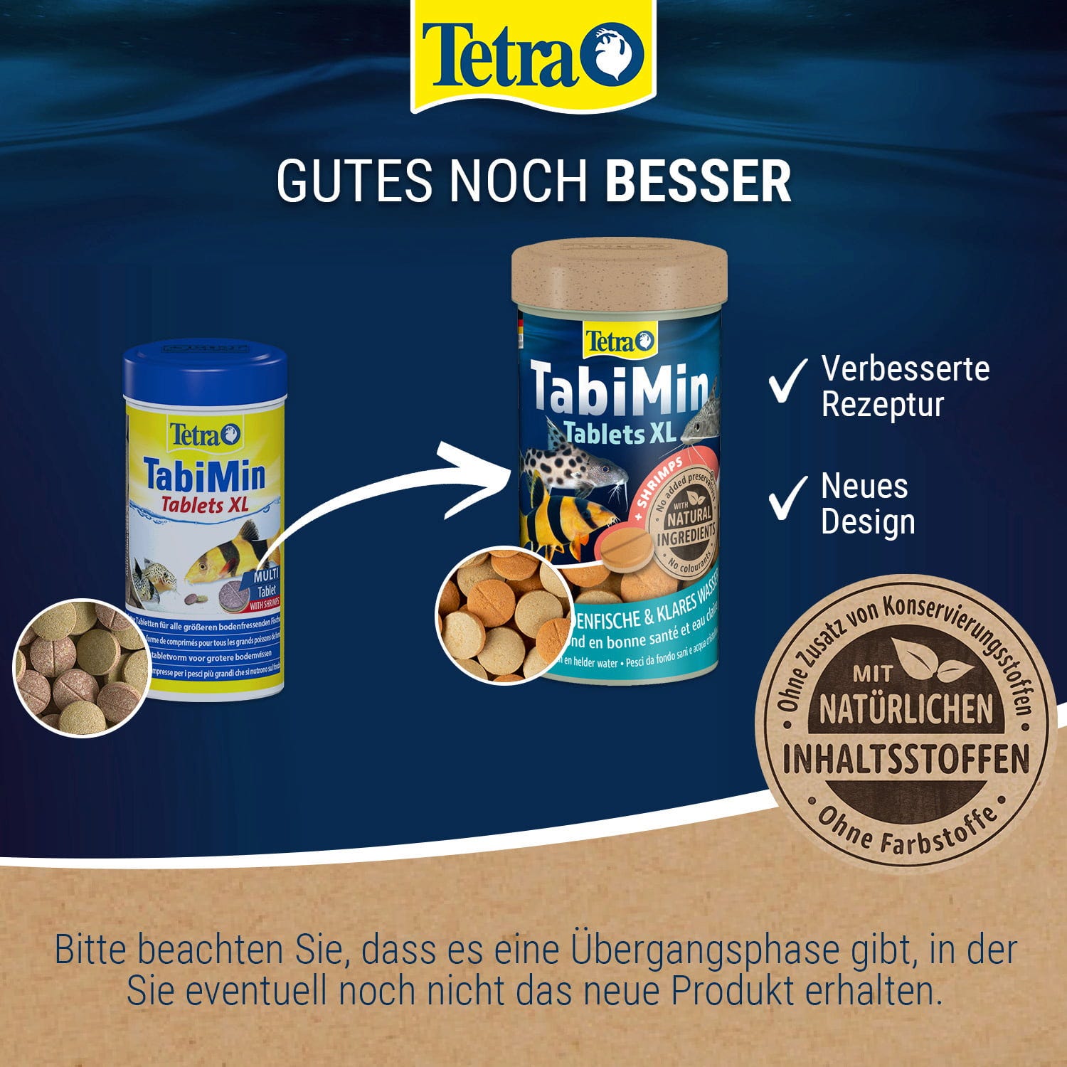 Tetra Tablets TabiMin ist ein biologisch ausgewogenes, nährstoffreiches Premium-Tablettenfutter für alle bodenfressenden Fische. Die Tabletten sinken schnell, können gut an versteckten Stellen für scheue Fische platziert werden und lösen sich für eine leichte Futteraufnahme langsam auf, ohne dabei zu zerfallen oder das Wasser zu trüben. Die neue Multi Tabletten Formel enthält Shrimps für eine verbesserte Akzeptanz sowie alle lebenswichtigen Nährstoffe, Vitamine und Mineralstoffe. Seetang mit vielen natürlichen Mineralien und Carotionoiden tragen zur natürlichen Verstärkung der Farbenpracht bei. Tetra Futter ist gut verdaulich- so wird das Wasser weniger belastet, bleibt sauber und klar.
