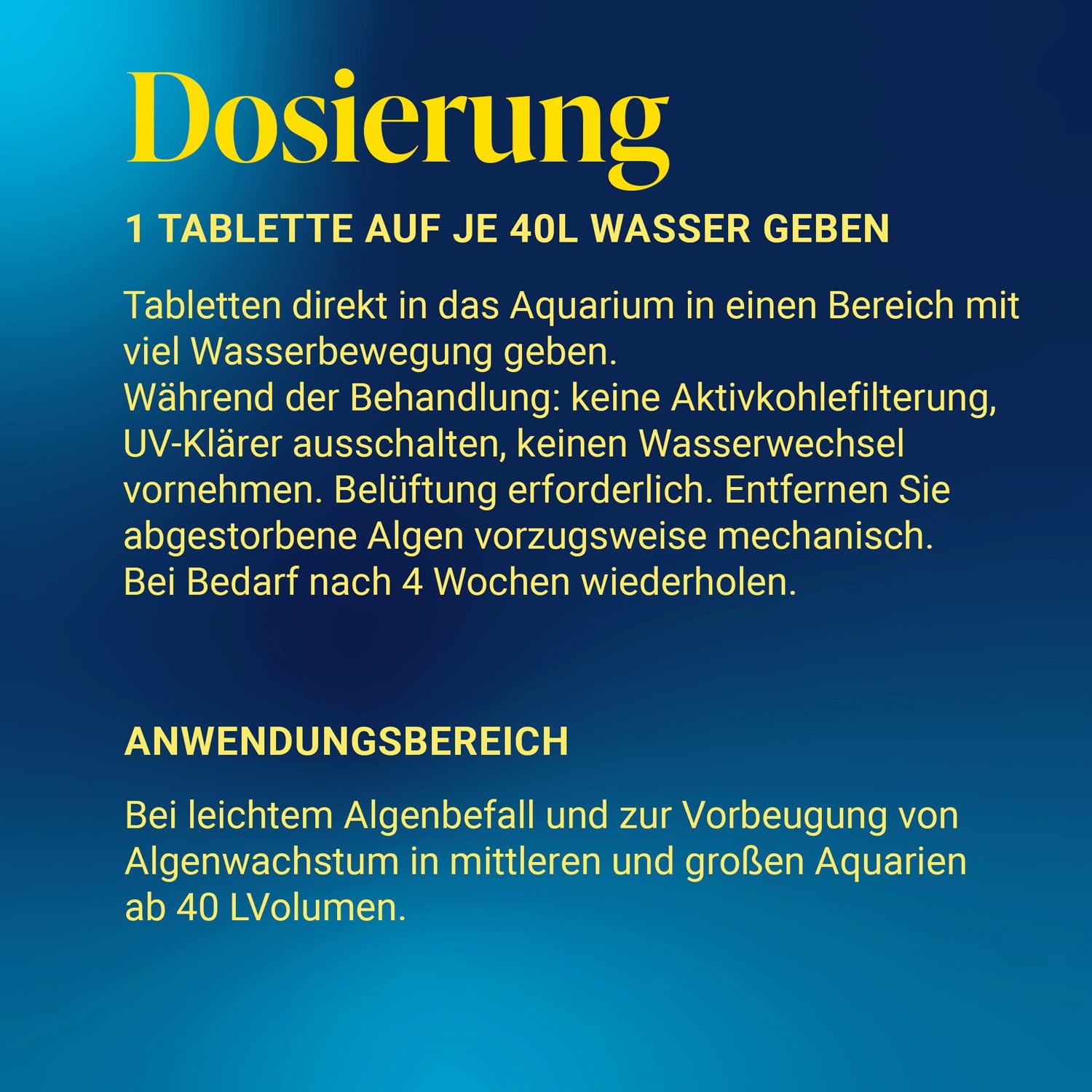 - Dosierung: 1 Tablette Tetra AlgoStop depot auf 40 Liter Aquarienwasser geben.