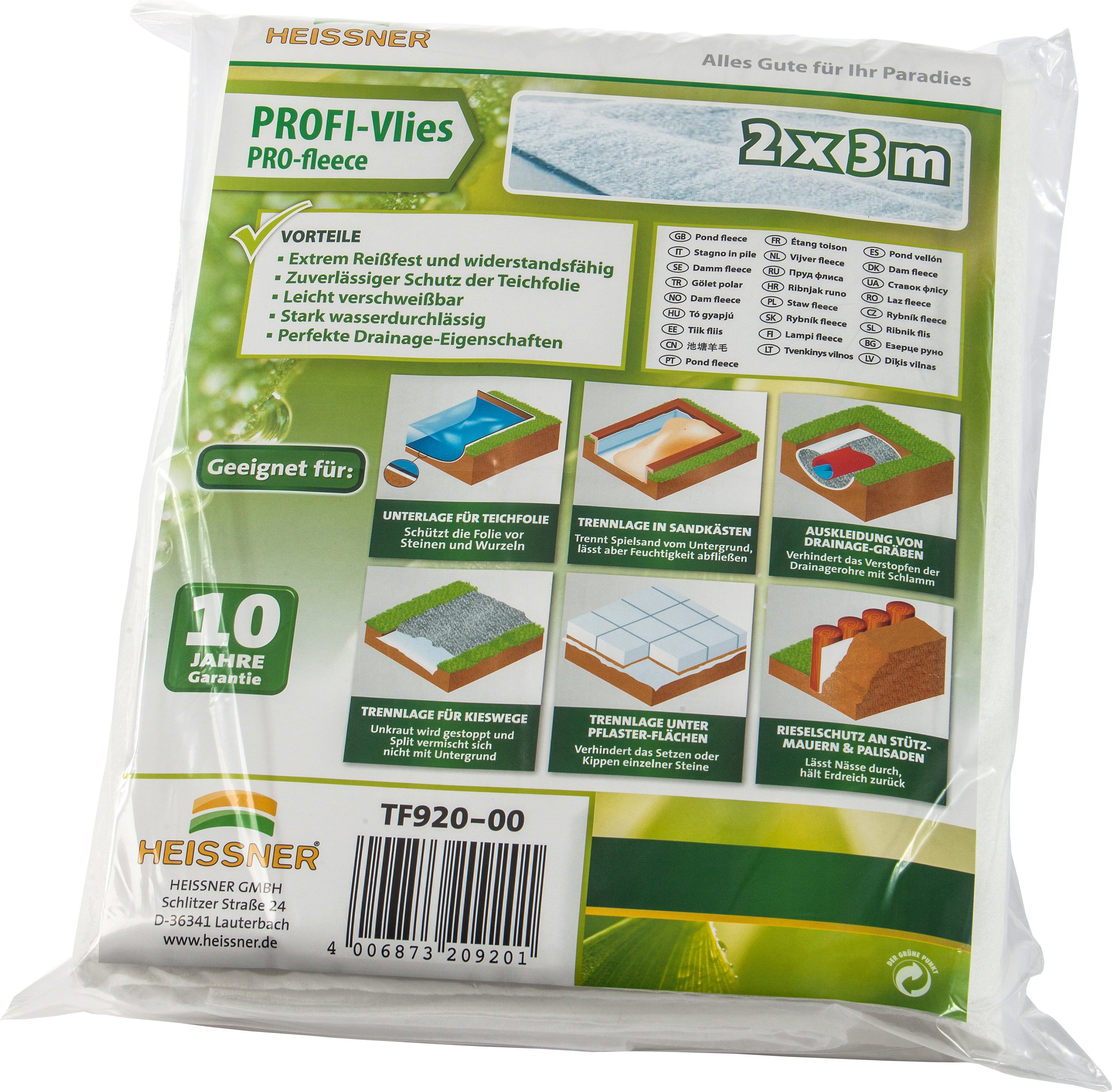 HEISSNER Extra Strong Pond Underlay 3 x 4 m / 12 m², 200 g/m² / Stärke 1,0 mm