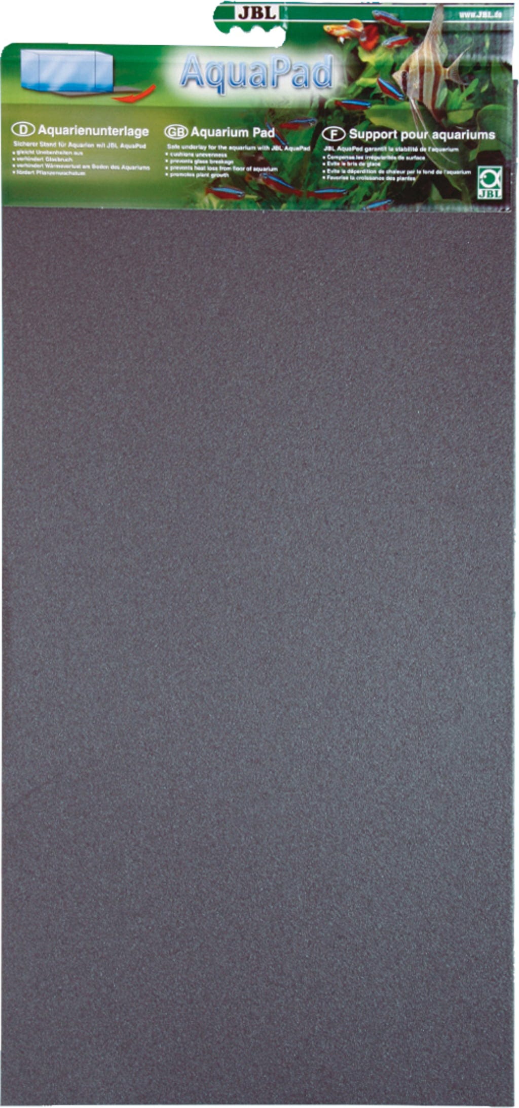 The AquaPad is selected according to the size of the aquarium or terrarium and placed under the aquarium. Aquariums should generally never be placed directly on wood or other materials. In addition, the JBL AquaPad offers ideal protection of the bottom pane when heavy stone structures, such as those in Malawi or Tanganyika aquariums or reef structures in seawater aquariums, have been installed.