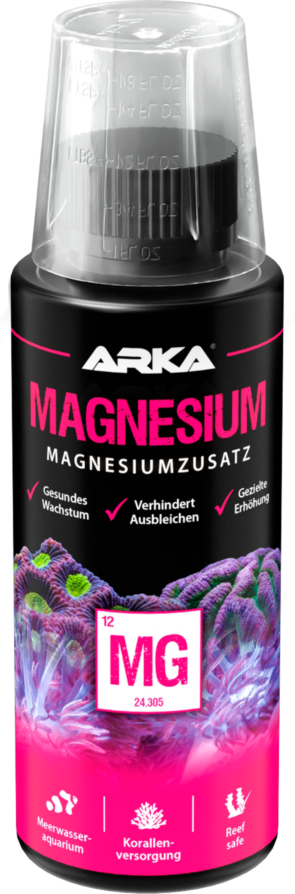 Magnesium additive with pH stabiliser. Counteracts magnesium deficiency and stabilises calcium and pH. The specially developed formula ensures healthy coral growth and rapid growth with red lime algae. With it, the skeleton is strengthened.