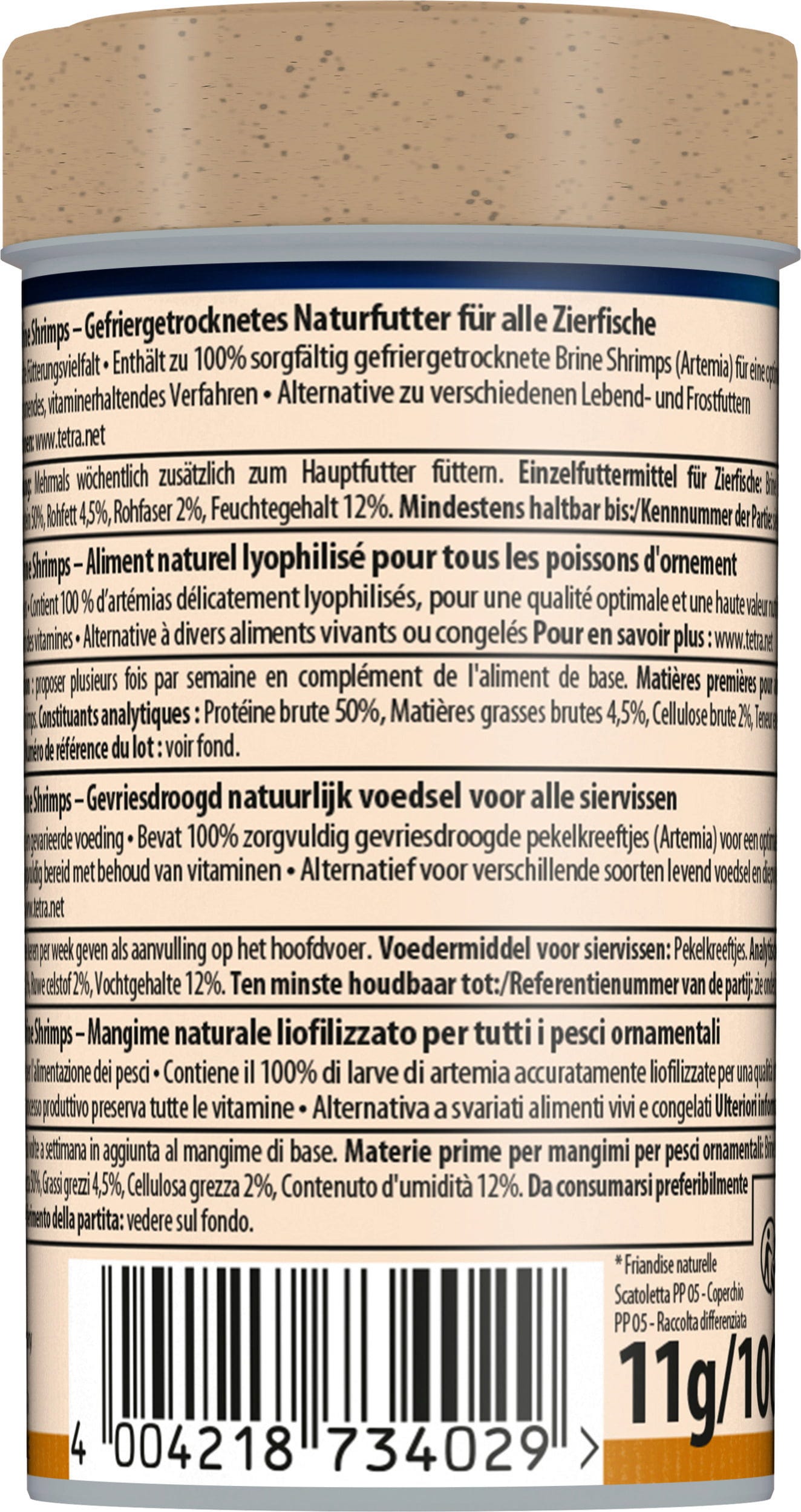 The Tetra Delica Artemia is a natural food for all ornamental fish in the freshwater aquarium. It is characterised by the high content of nutrients and carotenoids to naturally enhance the colour of the fish.