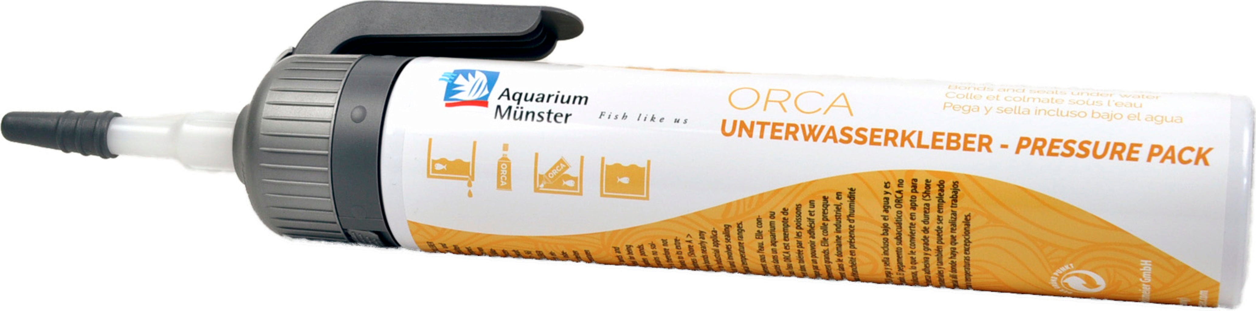L'adhésif permet de colmater les aquariums ou les bassins de jardin et de fixer des objets décoratifs. Avec un pouvoir adhésif extrêmement élevé et un degré de dureté supérieur à 56 Shore A, l'adhésif sous-marin ORCA lie presque tous les matériaux et peut également être utilisé dans le secteur industriel, en particulier lorsque des travaux d'étanchéité sont effectués en milieu humide ou à des températures élevées.