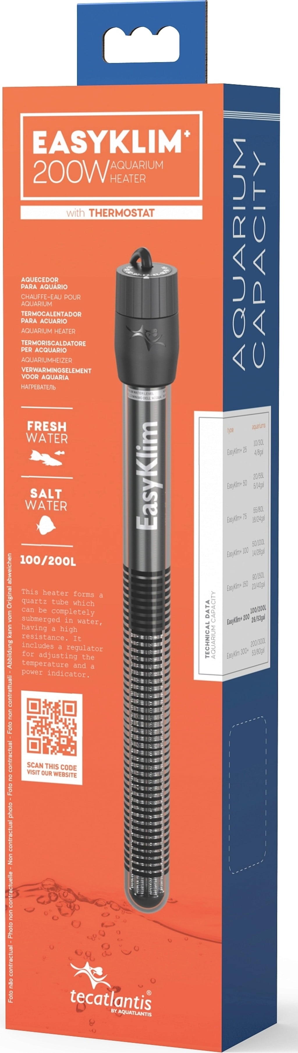 Les chauffages EasyKlim+ d'Aquatlantis sont très résistants et conviennent aux aquariums d'eau douce et d'eau salée.