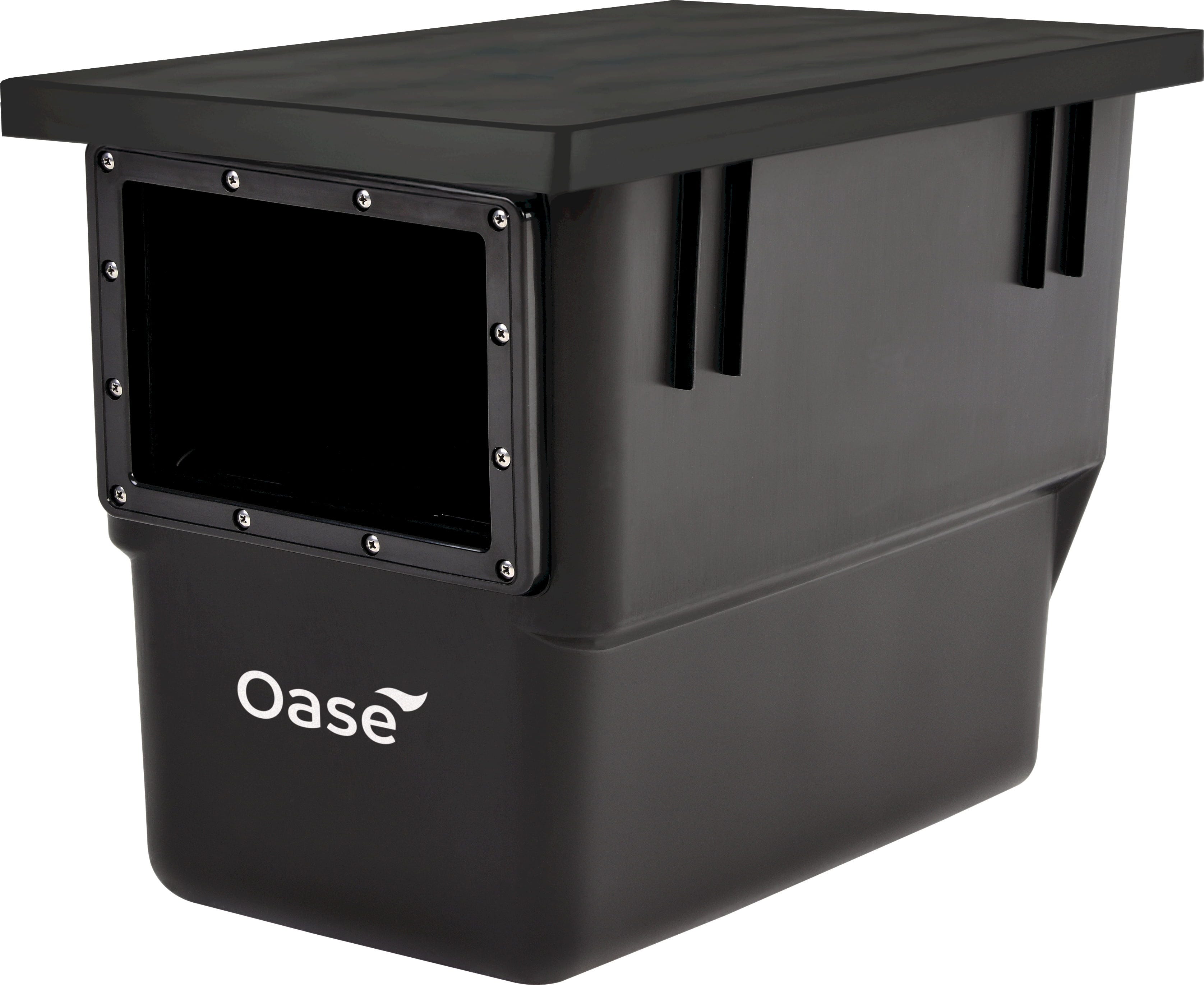 La chambre de pompe intégrée permet d’accueillir discrètement une pompe de filtration AquaMax Eco (disponible en option) afin d’alimenter le système. Pour préserver l’esthétique naturelle du bassin, un couvercle imitation roche est inclus. Grâce à sa conception intelligente, l’appareil compense automatiquement les variations de niveau d’eau jusqu’à 100 mm, garantissant une aspiration constante même en cas de fluctuations.
