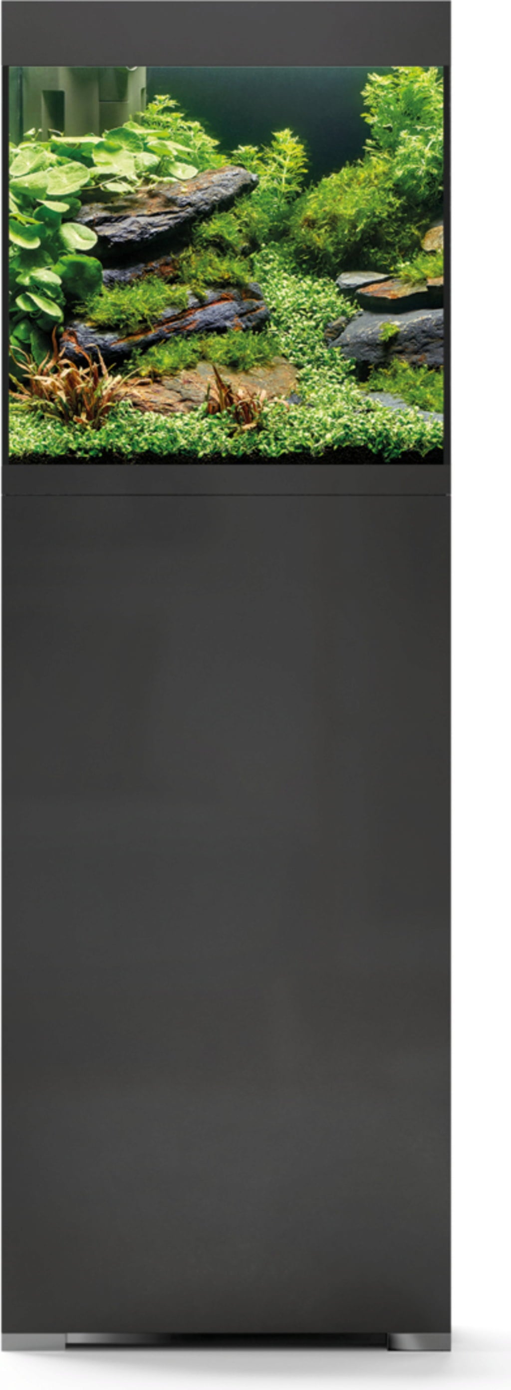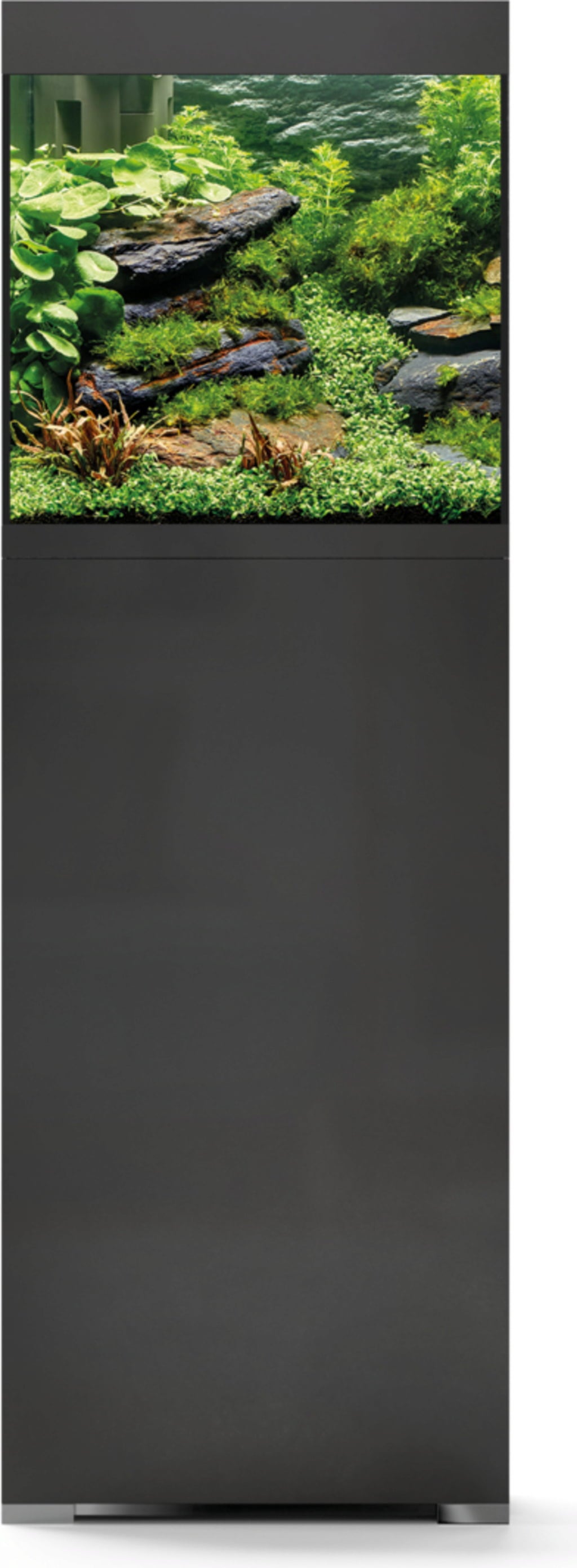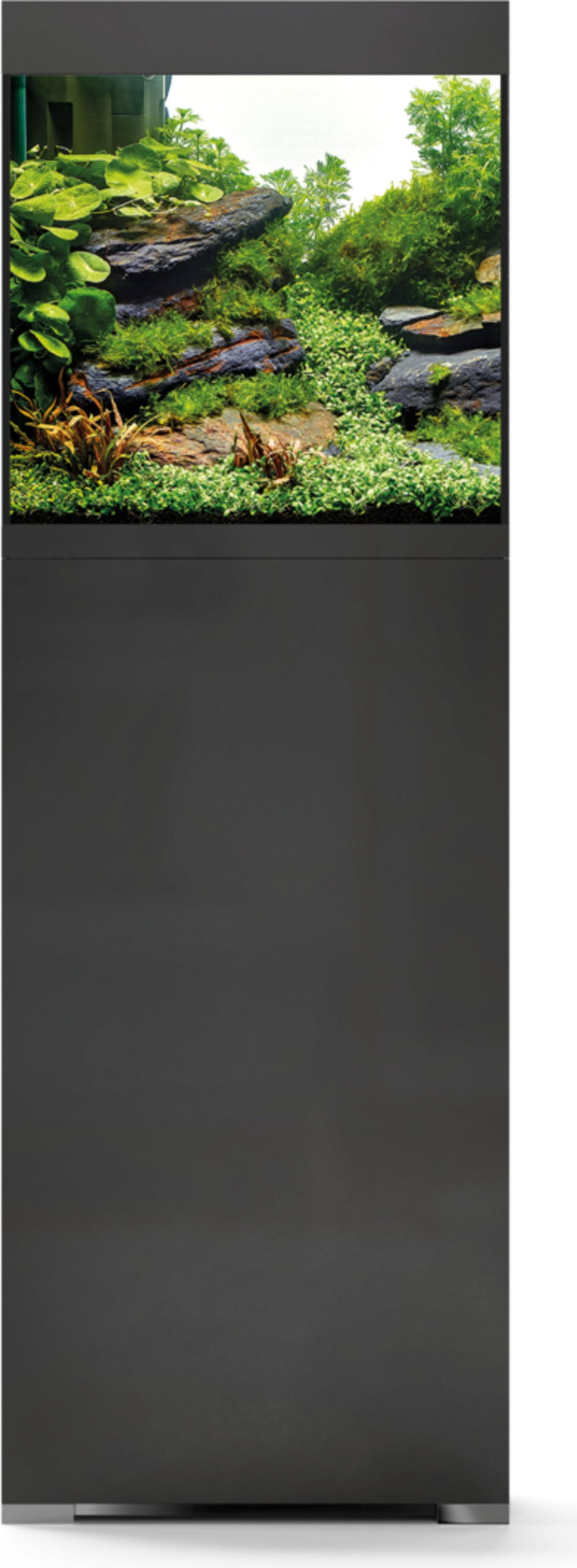 L'aquarium StyleLine est doté d'éléments en verre flotté de sécurité avec des bords en verre dépoli. Le couvercle en verre coulissant est entièrement amovible et facile à nettoyer. Le filtre d'angle interne est particulièrement pratique, car il peut être retiré, ce qui facilite et accélère l'entretien de l'aquarium. L'élégante armoire incluse dispose d'une fonction Push-to-Open (ouverture par pression), d'une étagère et de pieds de couleur aluminium.