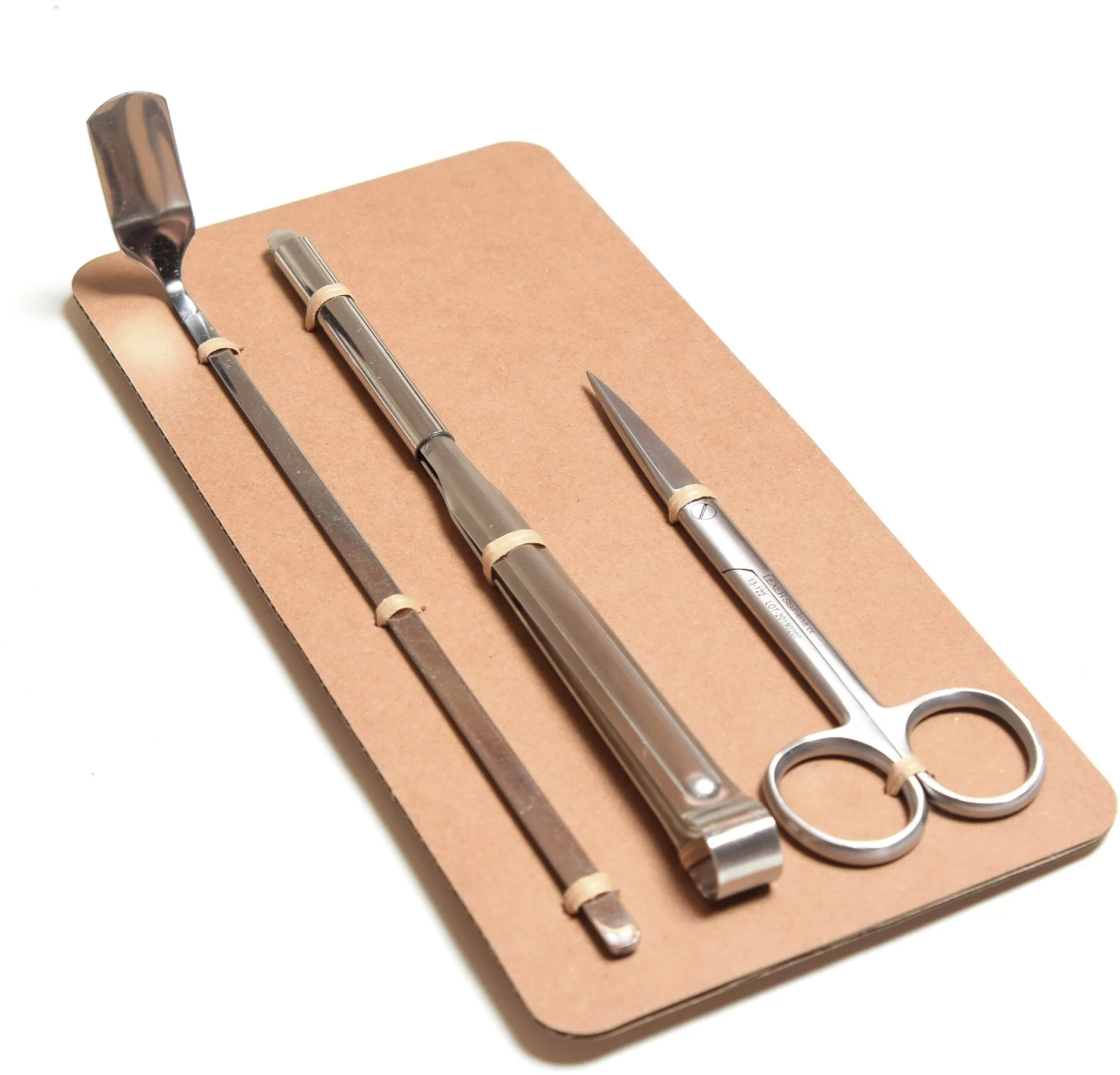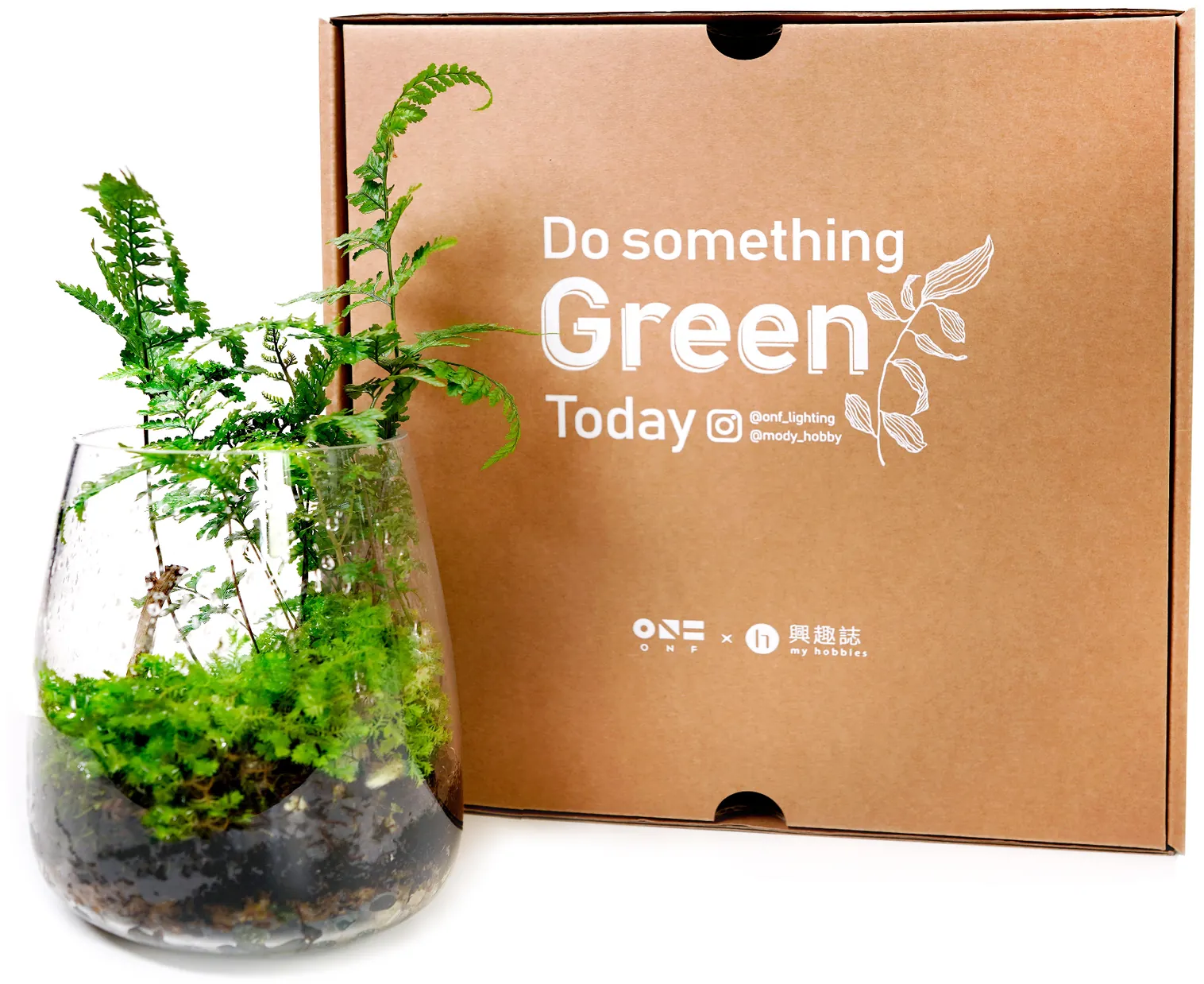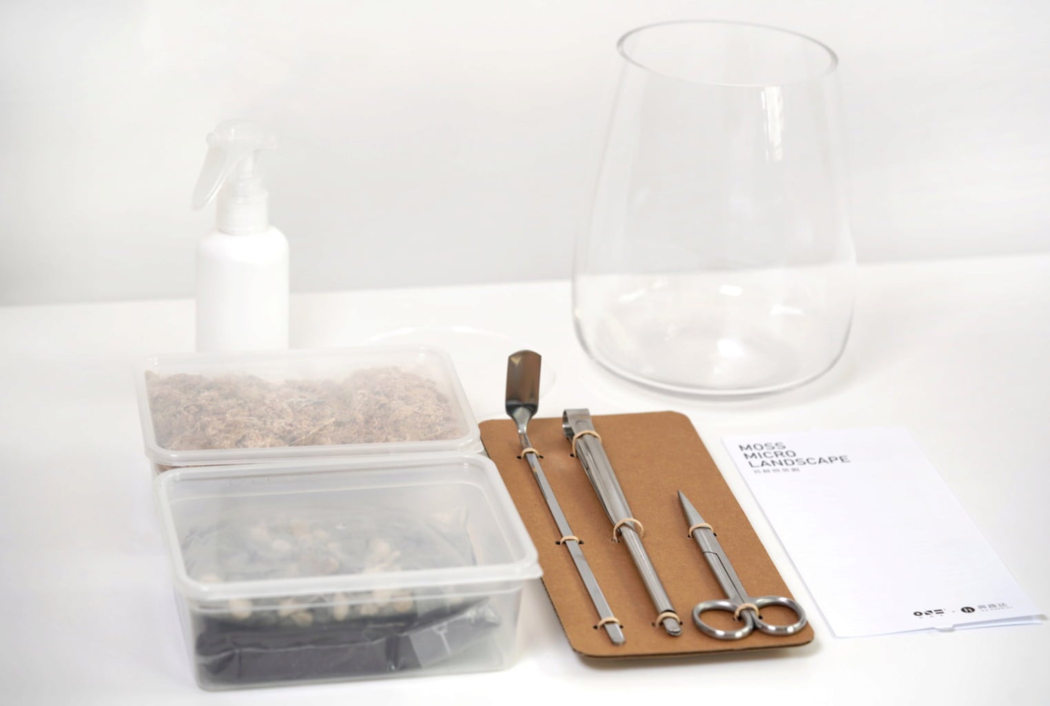 Composé d’un vase transparent et d’un couvercle permettant de réguler l’humidité, il offre la possibilité de créer de véritables mini-paysages avec des mousses, des fougères et des Wabi-Kusa. Le set comprend également des outils en acier inoxydable :