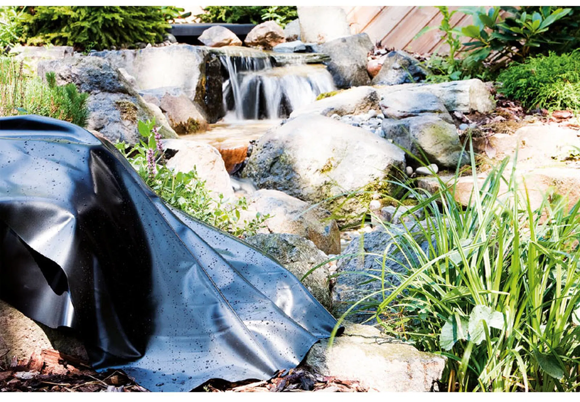 Pour un résultat optimal, il est recommandé de l'installer à des températures supérieures à +15 °C, car le matériau est particulièrement souple dans cette plage de températures. Grâce à ses excellentes propriétés adhésives, les ruisseaux ou les extensions de bassin peuvent être réalisés sans effort avec une colle PVC spéciale.