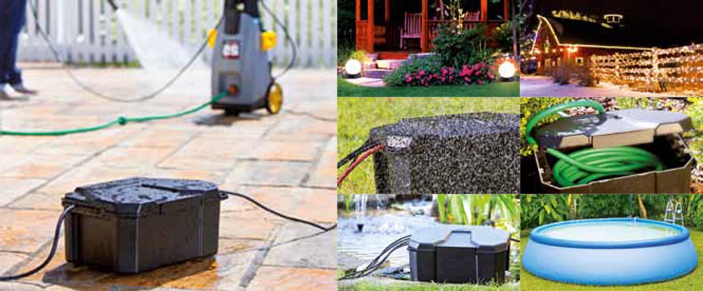 - Bassins de jardin => pompe, filtre, UVC, éclairage, etc.