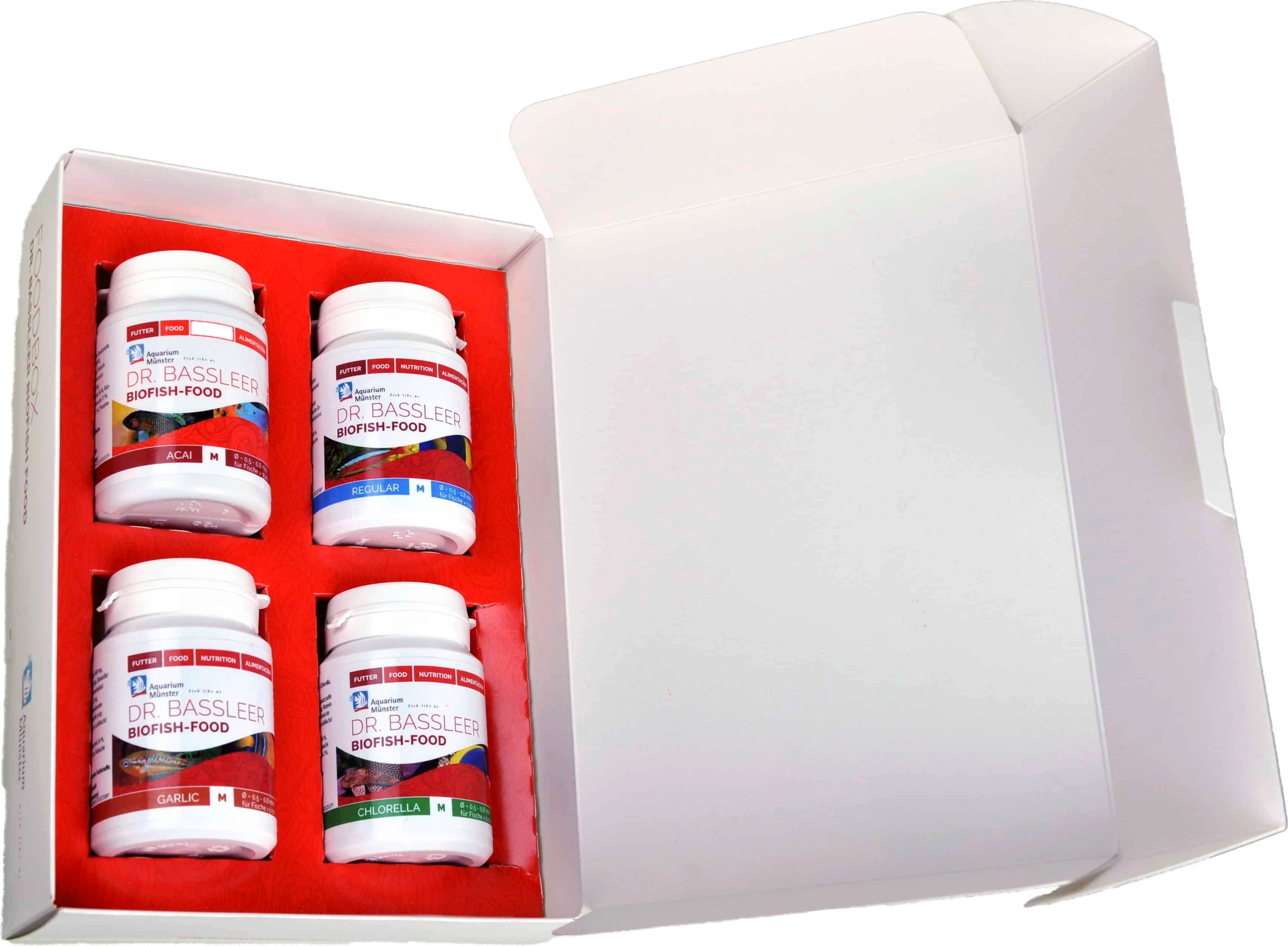 Con la Dr. Bassleer Biofish Food Box di Aquarium Münster offri ai tuoi pesci una dieta variata in modo semplice e pratico. Questa elegante confezione rappresenta l’introduzione ideale al mondo del granulato Dr. Bassleer Biofish Food, rinomato per la sua qualità nutrizionale.