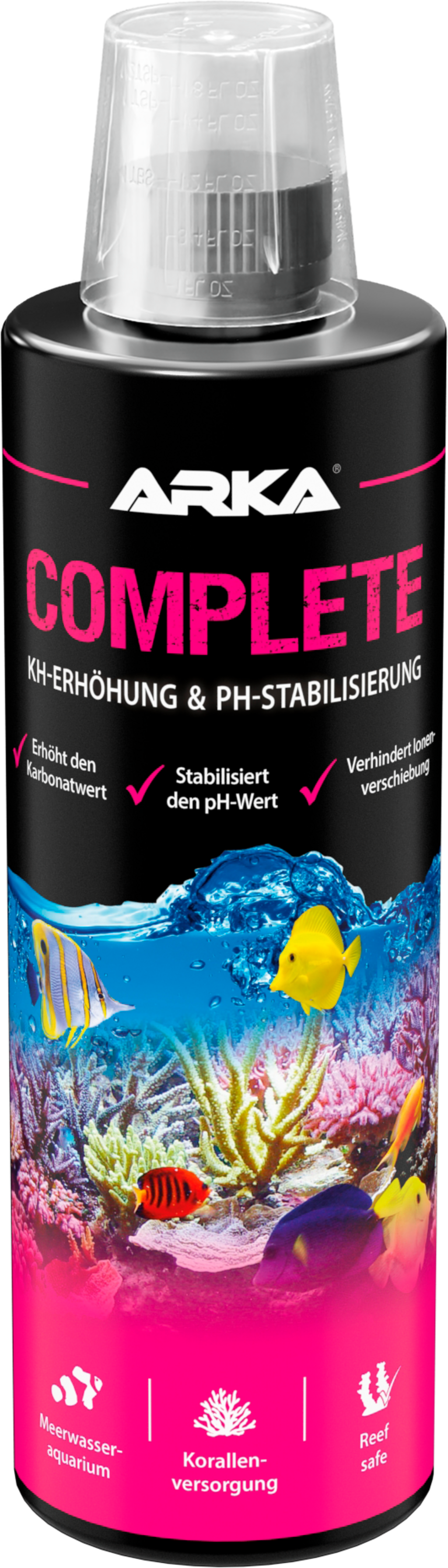 Facile da usare e molto efficiente, Complete garantisce valori di carbonato e di pH stabili, supporta l'apporto di calcio e previene permanentemente lo spostamento ionico.