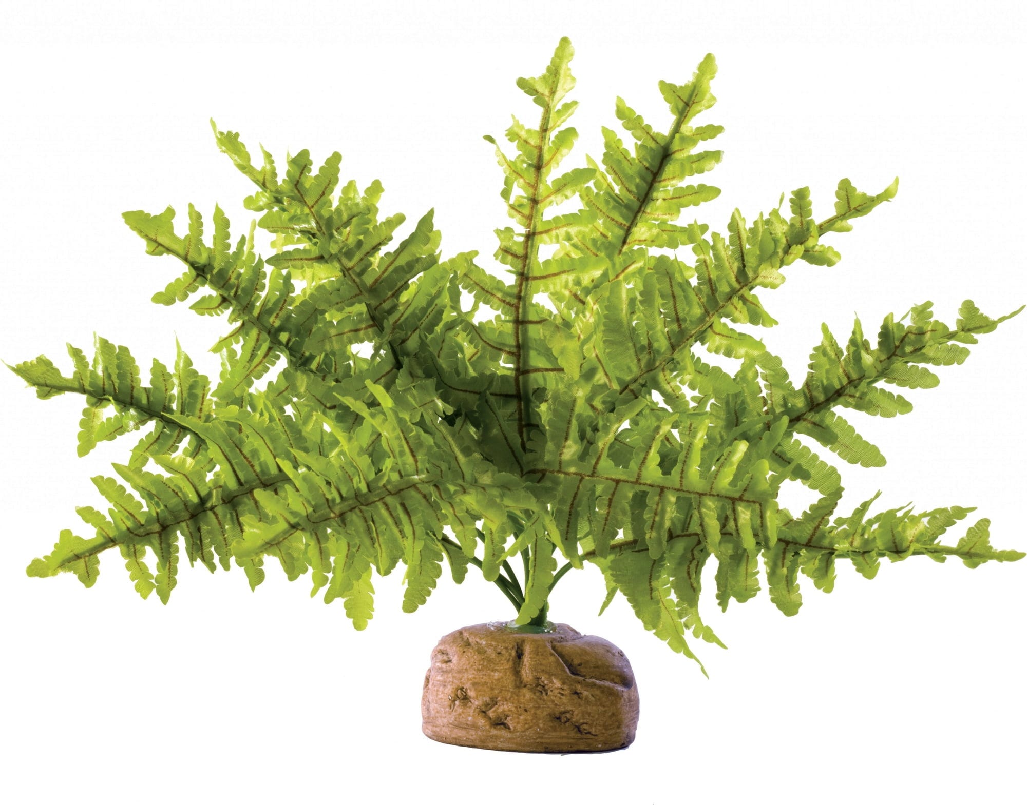 Questa riproduzione fedele e realistica di una felce di Boston è ideale per l'uso in terrari più "sterili", come i terrari di quarantena o in punti del terrario in cui le piante vere non possono prosperare.