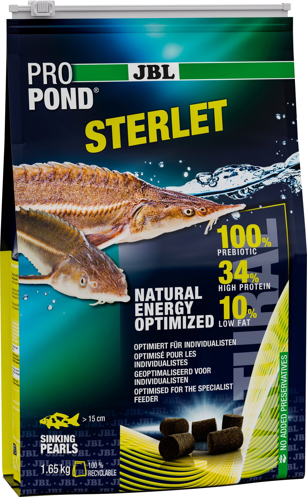 ProPond Sterlet di JBL è un mangime completo ideale per sterleti e storni di piccole dimensioni, utilizzabile durante tutto l’anno. Contiene salmone, gamberetti, tubifex, cozze verdi, spirulina e gammarus, per offrire una alimentazione il più possibile naturale ai pesci.
