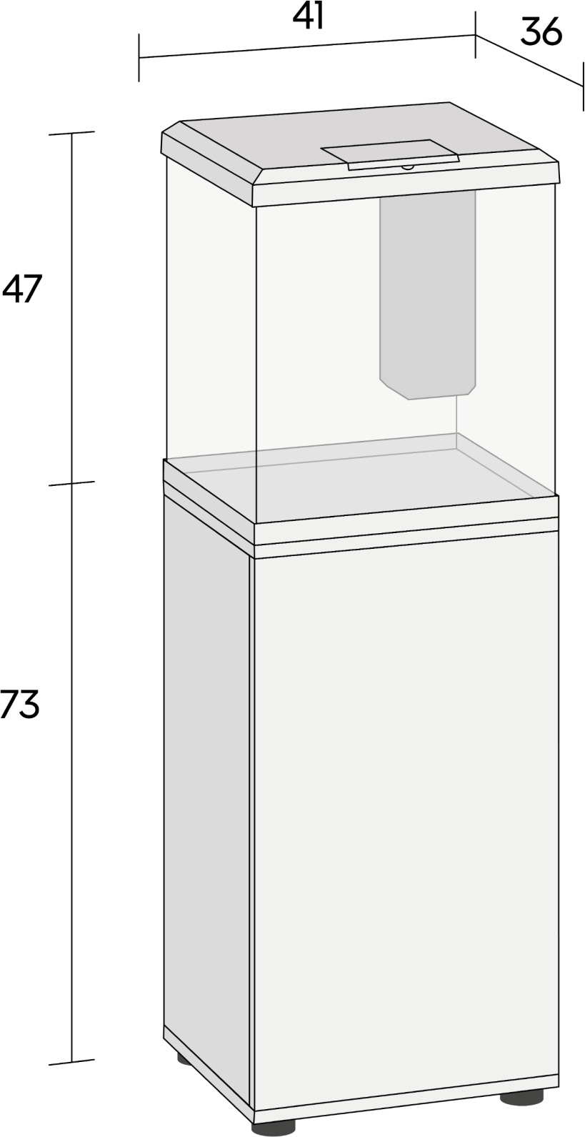 Il montaggio semplice assicura che il tuo nuovo progetto acquaristico sia pronto in un batter d'occhio. Dietro l'anta opaca troverai inoltre ampio spazio per riporre i tuoi accessori e il cibo in modo ordinato e a portata di mano, così nulla disturberà il look minimalista del tuo aquascape!