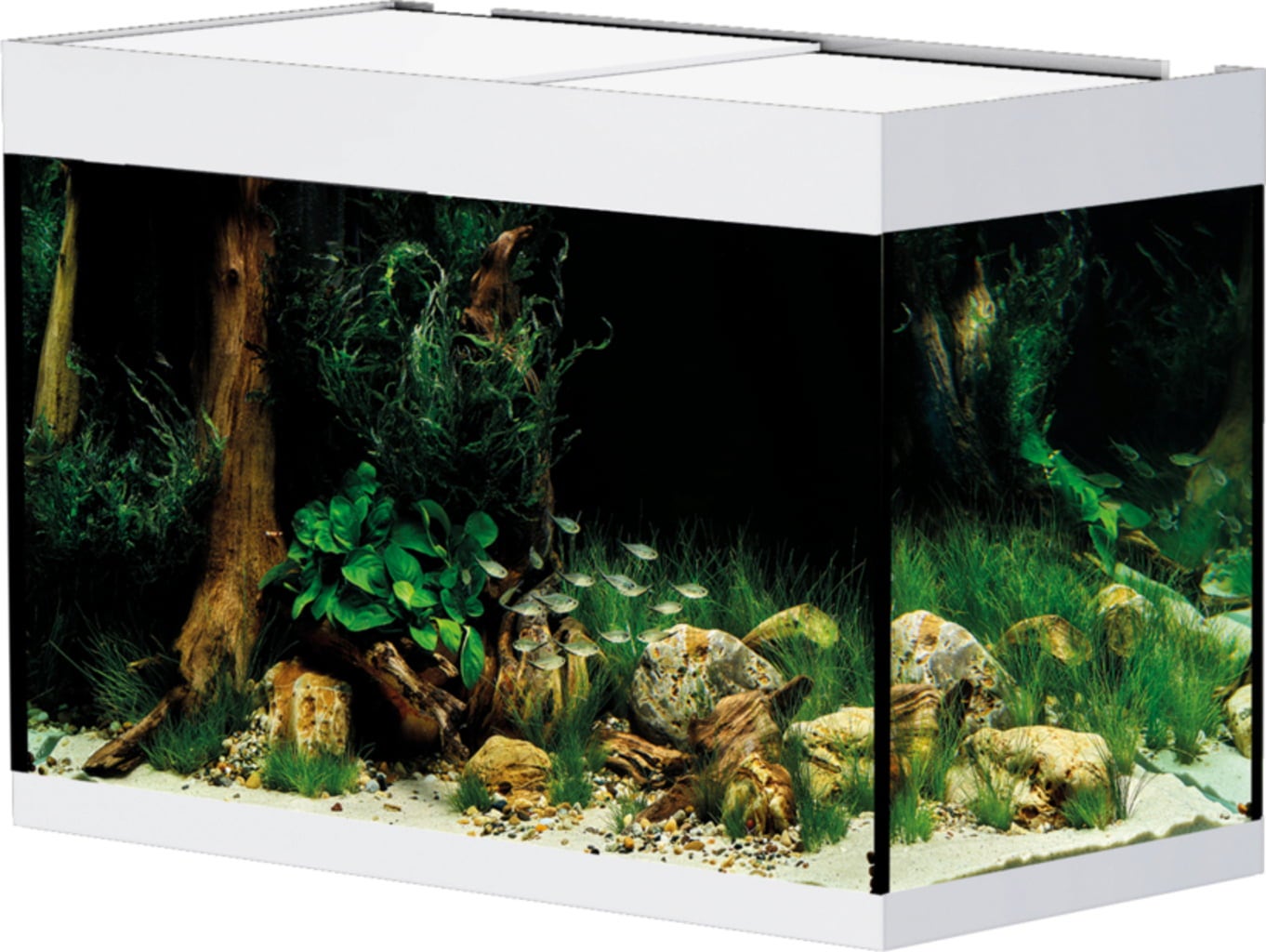 Il cuore del kit è la vasca da 160 litri in vetro float di alta qualità, resistente ai graffi e in grado di offrire una visione chiara e senza distorsioni del tuo paesaggio subacqueo. Per garantire un’acqua limpida e sana, l’acquario è dotato di un filtro interno BioPlus Thermo già integrato, che assicura non solo una filtrazione efficace ma anche la temperatura ideale per il benessere di pesci e piante. L’illuminazione LED Classic inclusa illumina la vasca con una luce naturale e armoniosa.
