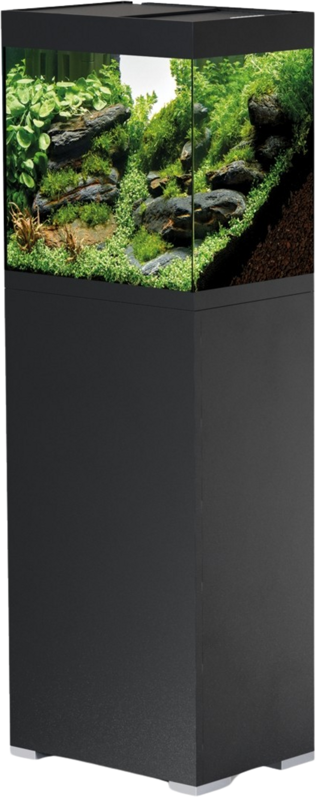 L'acquario StyleLine presenta elementi in vetro float di sicurezza con bordi in vetro smerigliato. La copertura scorrevole in vetro è completamente rimovibile e facile da pulire. Il filtro angolare interno è particolarmente pratico, poiché può essere rimosso, facilitando e velocizzando la manutenzione dell'acquario. L'elegante mobiletto incluso ha una pratica funzione Push-to-Open, un ripiano e piedini in color alluminio.