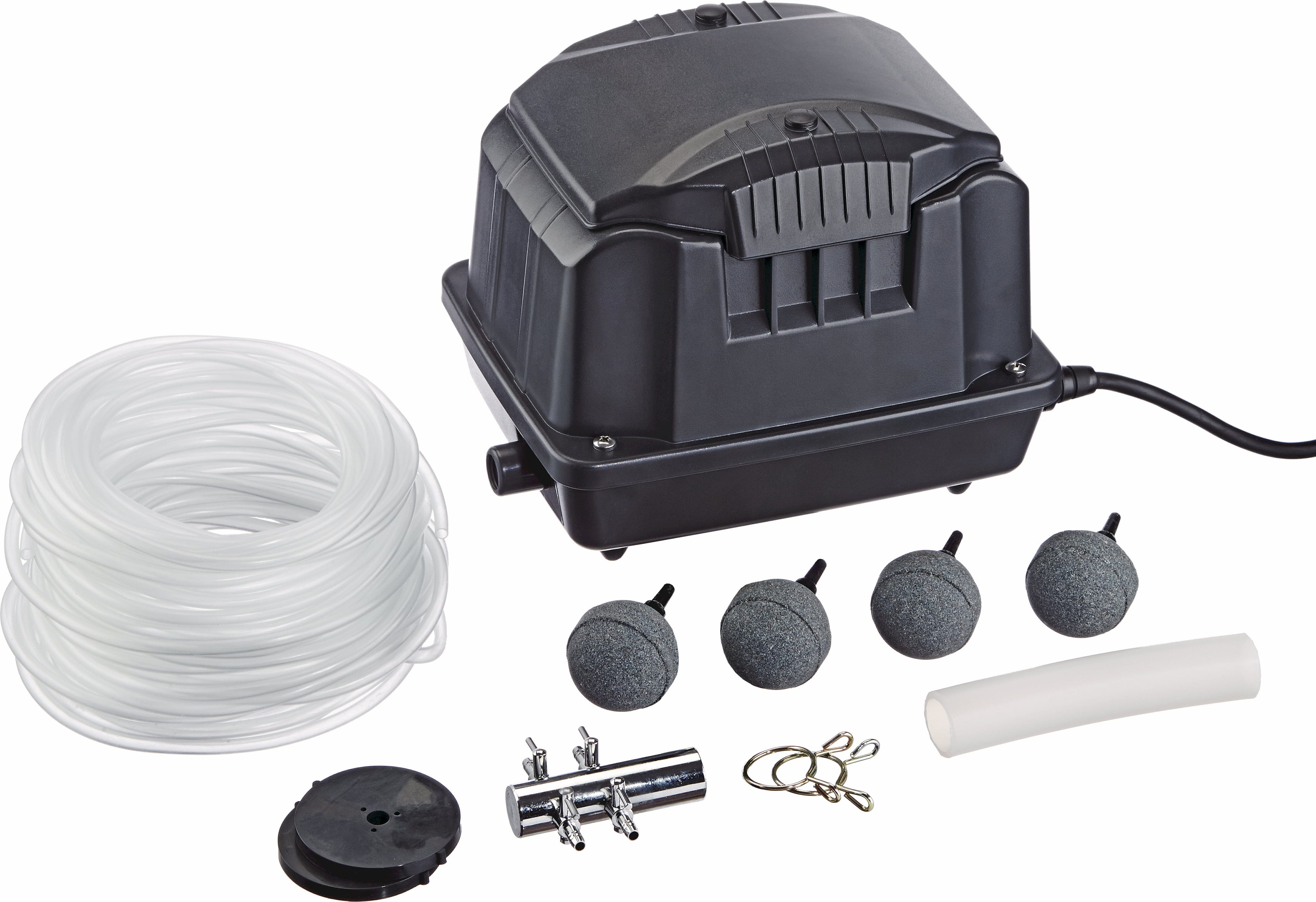 - Set 1800 & 3600: pompa ad aria, inclusi 1 distributore d'aria, 4 tubi flessibili per l'aria da 5 m, 4 pietre porose e membrane di ricambio
