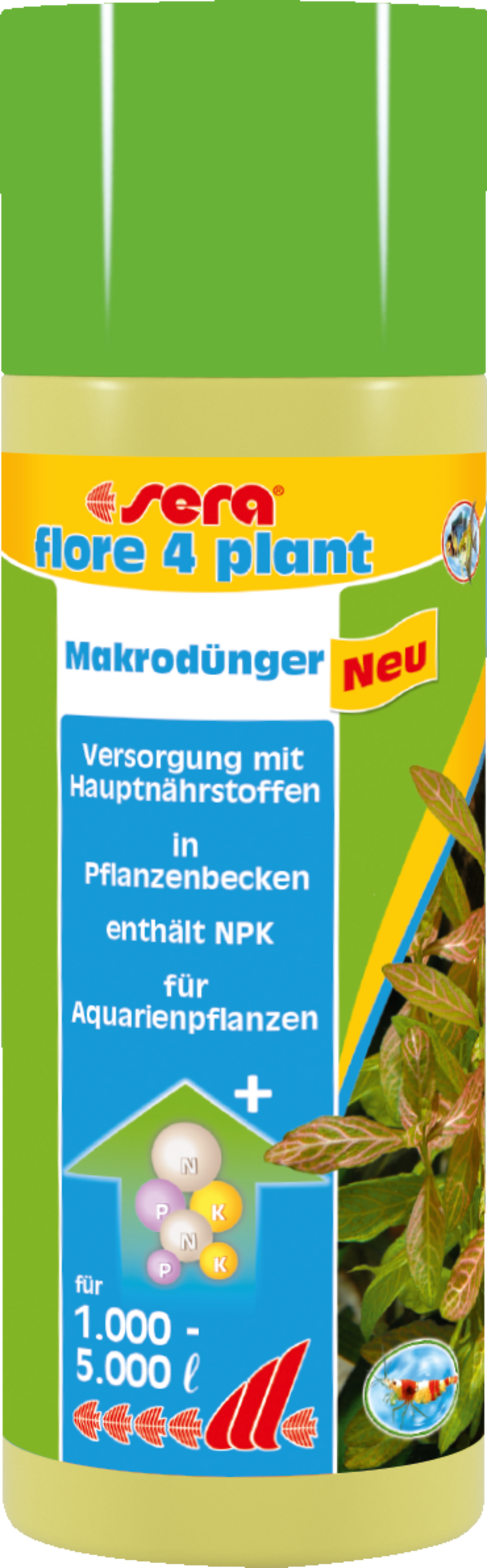 Sera Flore 4 Plant fa parte del sistema di fertilizzazione di Sera ed è un fertilizzante con NPK per piante acquatiche. Contiene i cosiddetti macronutrienti maggiormente consumati dalle piante, come azoto, fosforo e potassio.