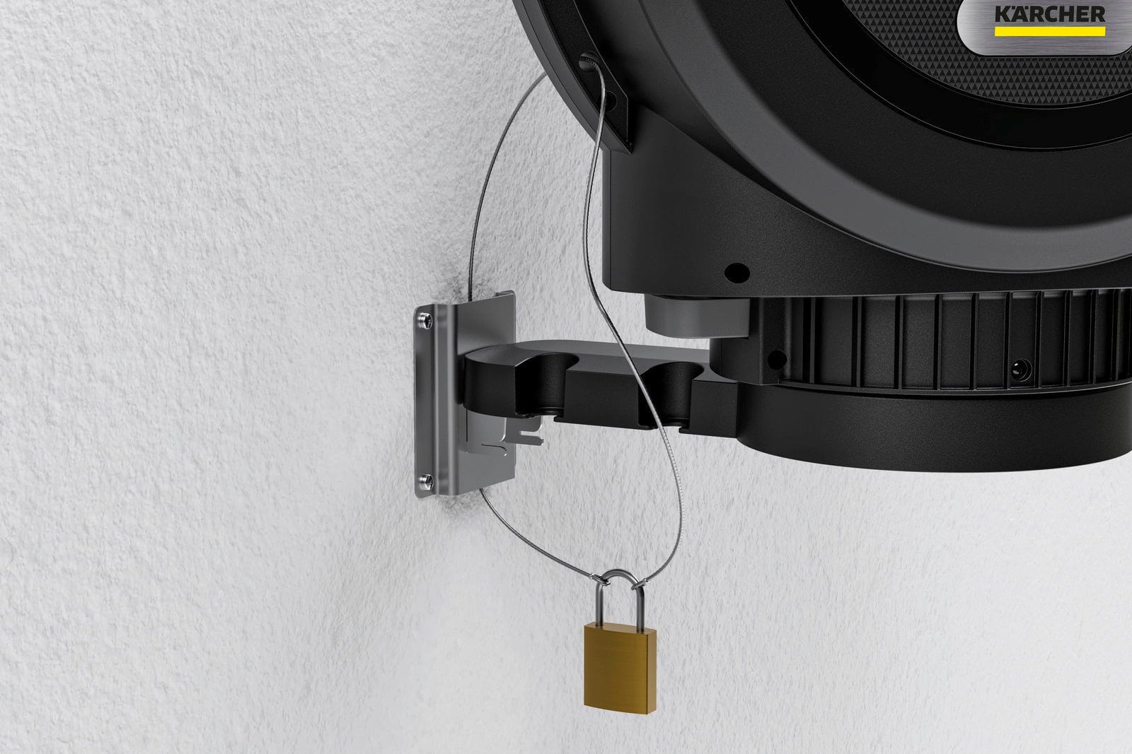 Il montaggio avviene a parete in modo salvaspazio. Grazie al supporto a parete orientabile, l'avvolgitubo può essere regolato in modo flessibile, così da raggiungere diverse aree del giardino. Durante lo srotolamento, il tubo si blocca automaticamente a brevi intervalli, consentendo di utilizzare comodamente la lunghezza desiderata.
