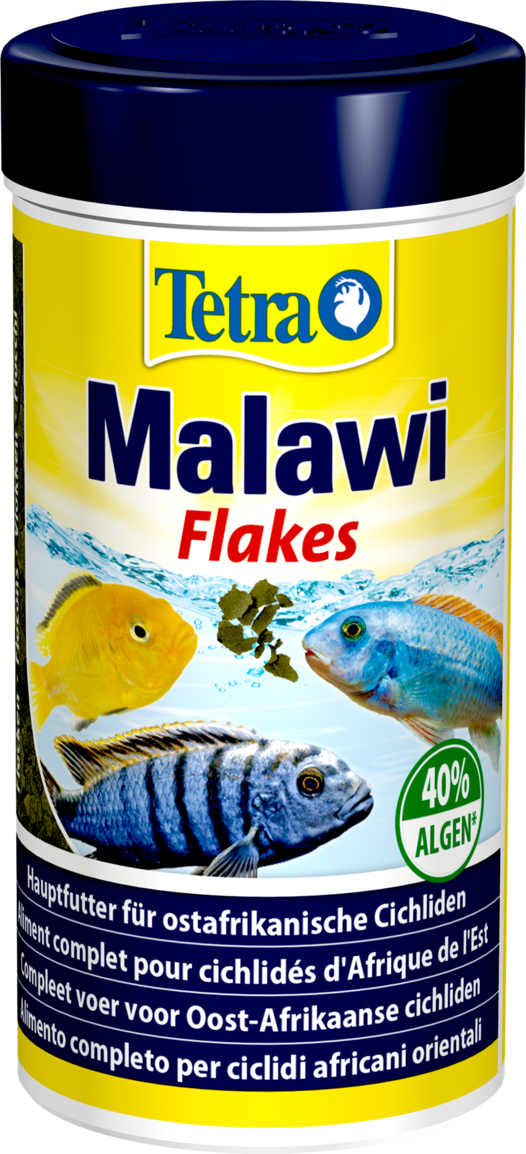 Tetra Malawi Flakes è particolarmente adatto come mangime principale per tutti i ciclidi erbivori come quelli della specie Mbuna. La miscela di alta qualità contiene tre diversi tipi di alghe Spirulina, Nori e Chlorella ed è specificatamente adattata alle esigenze di questi pesci.