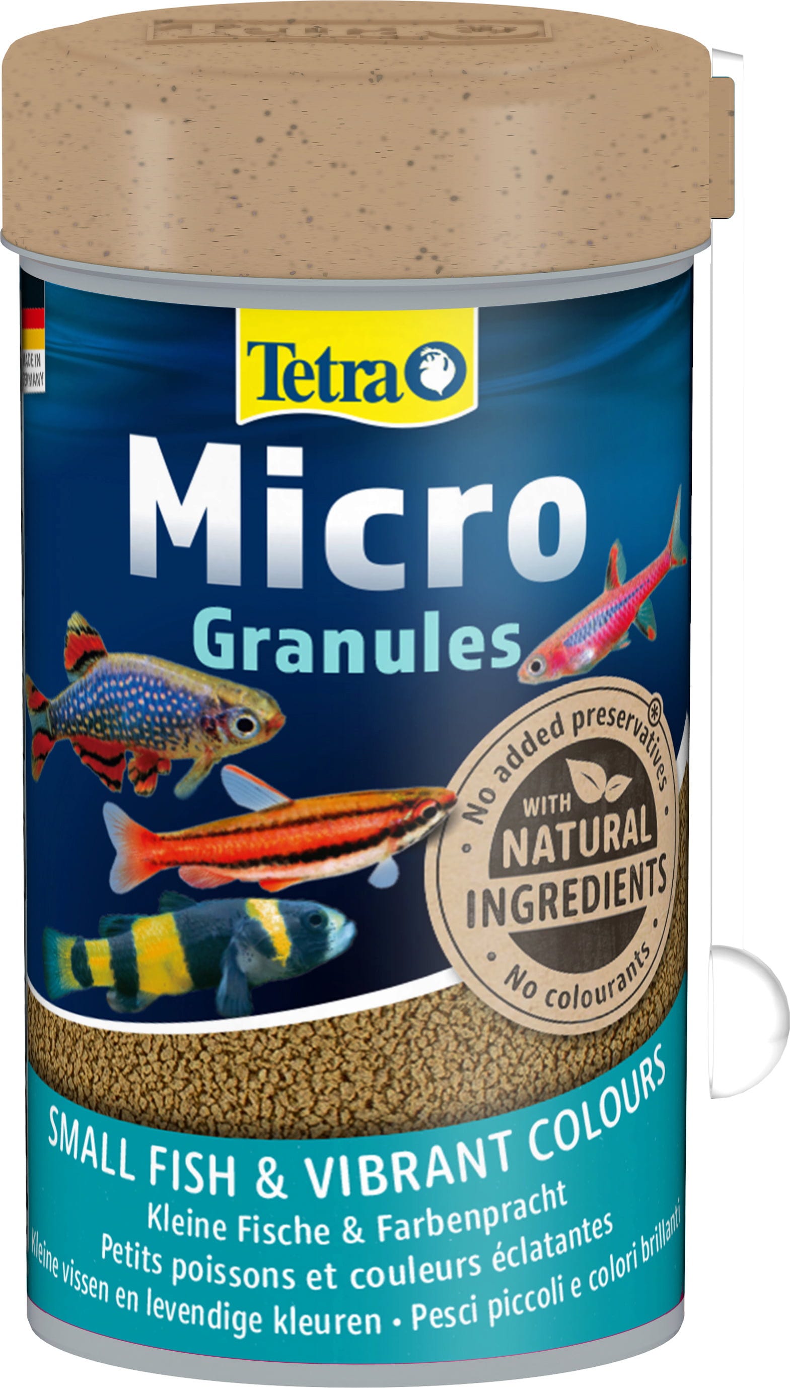 Micro Granules è un mangime con nutrienti di alta qualità ed è pensato per le esigenze speciali dei piccoli pesci ornamentali. Con una formulazione equilibrata di ingredienti vegetali e animali, il mangime è adatto per pesci erbivori e carnivori.