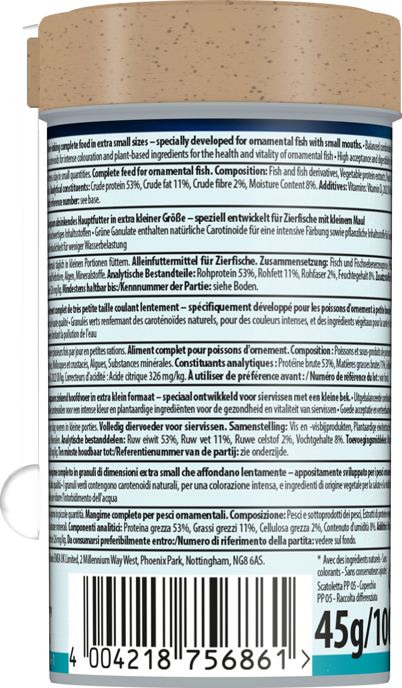 | Dichiarazione sui mangimi: | mangime completo |