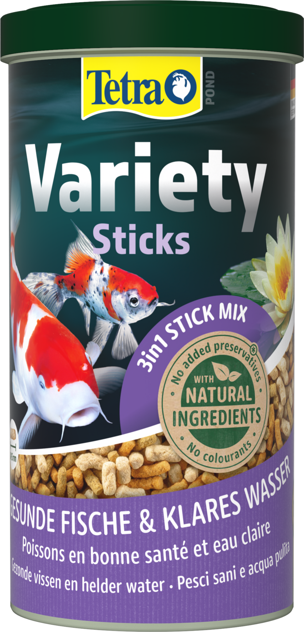 Pond Variety Sticks è un mangime completo sotto forma di stick e pensato per tutti i pesci nel laghetto da giardino. Con nutrienti essenziali, vitamine e oligoelementi, il mangime contiene inoltre esaltatori di colore biologicamente attivi di alta qualità. La facile digeribilità è offerta dai bastoncini di germe di grano di alta qualità e ricchi di fibre. La vitamina C invece garantisce una maggiore resistenza. Il facile assorbimento e la buona digeribilità dei bastoncini garantiscono un basso intorbidamento dell'acqua e una migliore qualità dell'acqua.